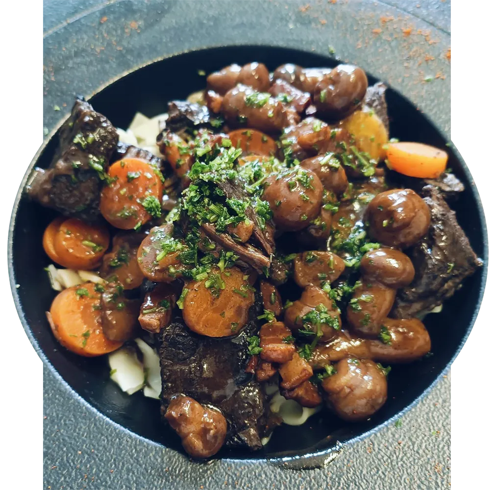 Son parcours riche et varié se retrouve aujourd’hui dans une cuisine maîtrisée, généreuse et authentique.